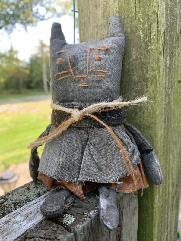 Title (ebay affiliate link): Primitive Halloween Black Cat Shelf Sitter Doll Handmadeinohio