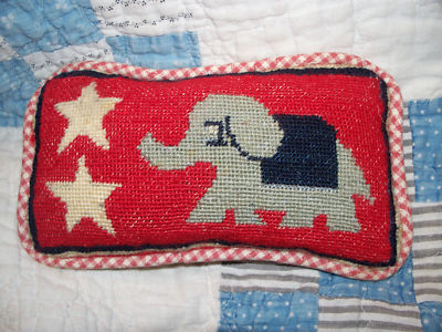 Title (ebay affiliate link): Vintage REPUBLICAN GOP itty-bitty Needlepoint Pillow!