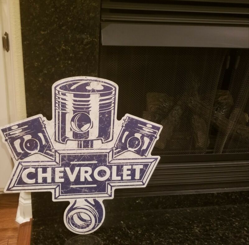 Title (ebay affiliate link): Chevrolet Pistons Embossed Tin Metal Sign - Chevy - GM - Trucks - Retro Bowtie