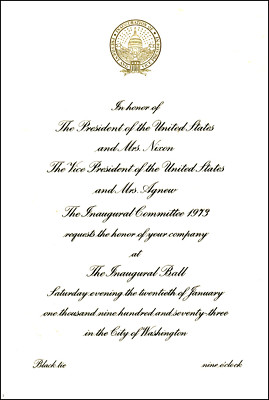 Title (ebay affiliate link): 1973 Engraved Invitation to Nixon Agnew Inaugural Ball