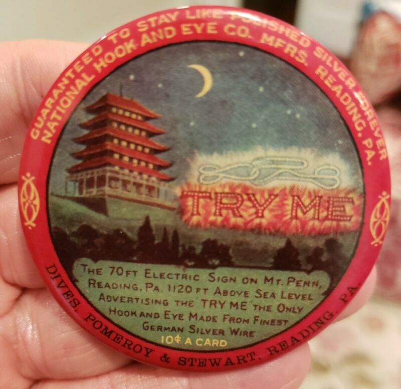 Title (ebay affiliate link): Early 1900''s NATIONAL HOOK AND EYE COMPANY, Pagoda Pocket Advertising Mirror