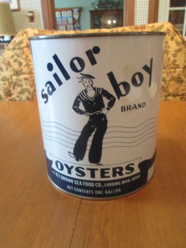Title (ebay affiliate link): Sailor Boy Brand Oysters tin by R.F. Brown Sea Food Co. 1 Gallon