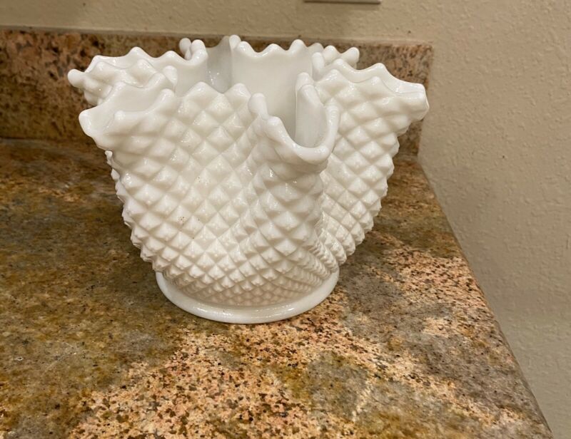 VINTAGE MILK GLASS FENTON VASE BEAUTIFUL HOBNAIL DESIGN