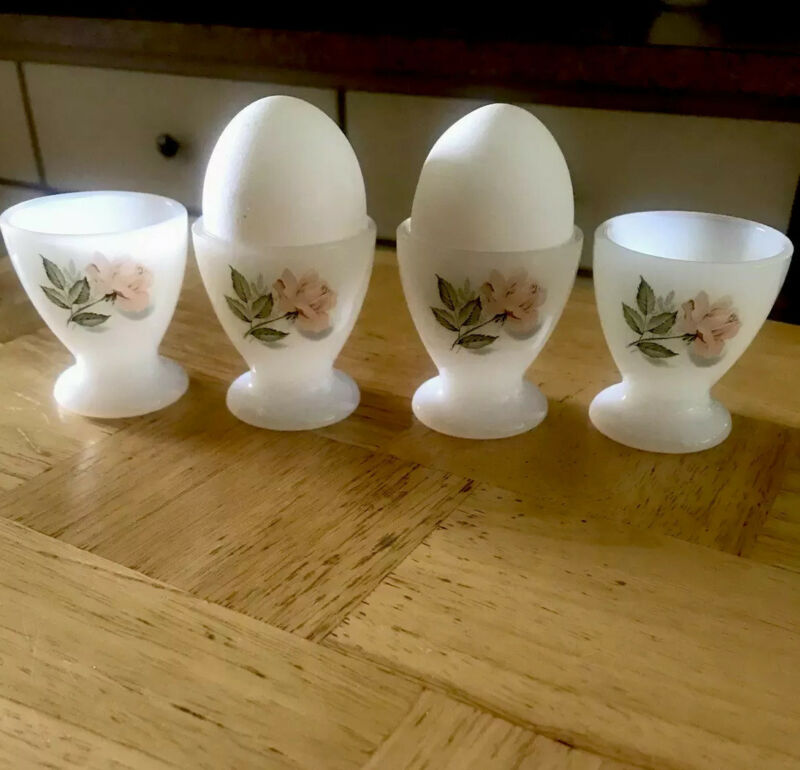 Title (ebay affiliate link): 4 Vintage French White Milk Glass Pyrex Egg Cups~Rose Flower