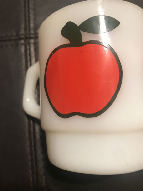 Title (ebay affiliate link): Vtg Fire King Milk Glass Red Apple Fruit Stacking Mug Coffee Cup