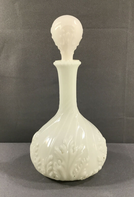 Title (ebay affiliate link): Vintage White Milk Glass Embossed Leafy Decanter With Stopper