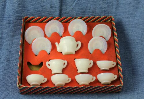 Title (ebay affiliate link): Vintage Milk Glass Miniature Tea Set in Box Made in Japan 1 Missing Cup