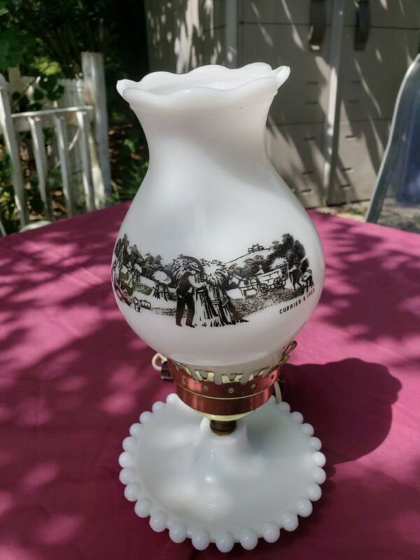 Title (ebay affiliate link): Vintage Currier And Ives Painted Milk Glass Lamp Harvest Time