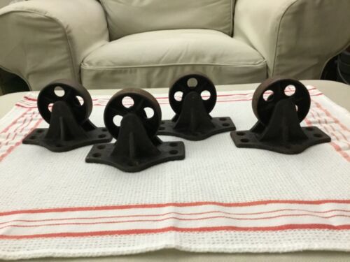 Title (ebay affiliate link): 4 MATCHING EARLY ANTIQUE INDUSTRIAL CAST IRON WHEELS