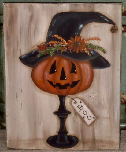 *~*PRIMITIVE*~* HP FOLK ART PRIM PUMPKIN WITCH MAKE-DO *~* BOO *~* RECLAIM WOOD