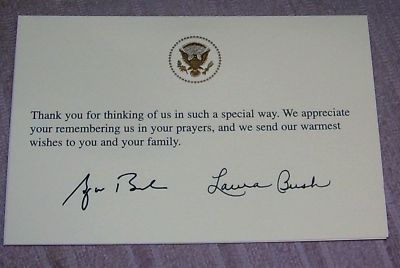 Title (ebay affiliate link): GW BUSH PRAYER THANK YOU CARD PRESIDENT SEAL EAGLE
