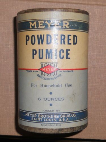 Title (ebay affiliate link): Meyer Brothers Drug Co. St. Louis, MO Cardboard Tube Container Powdered Pumice