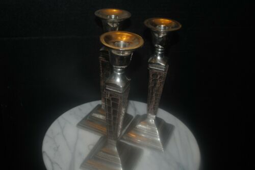 Title (ebay affiliate link): Set of 3 Andrea by Sadek formal 9 1/2 in tall metal and leather candle sticks