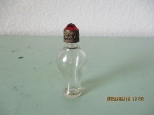 Title (ebay affiliate link): VINTAGE CLEAR GLASS PERFUME BOTTLE W/ FILIGREE SCREW LID W/ RED STONE
