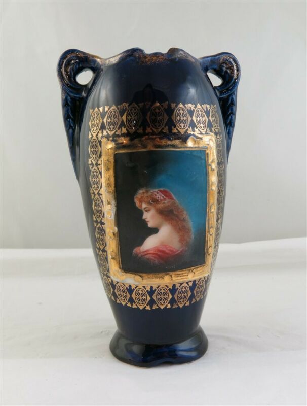 Title (ebay affiliate link): Josef Strnact Austria Gold Gilt HAnd Painted Portrait Cobalt Blue Vase 6 3/4"