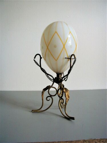 Title (ebay affiliate link): BEAUTIFUL ANTIQUE DECORATED OPALINE BLOWN GLASS EGG IN GILT BRONZE HOLDER