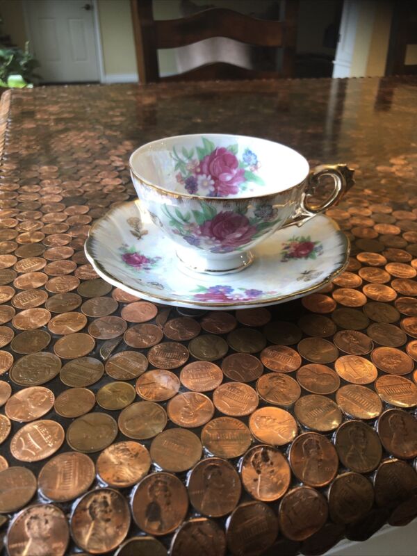 Title (ebay affiliate link): Vintage Bone China Tea Cup & Saucer - Pink Roses w/ Gold Gilt - Lusterware