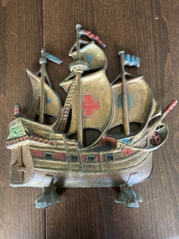 Antique Cast Iron Pirate Ship Doorstop A W Reist Company Toledo Ohio