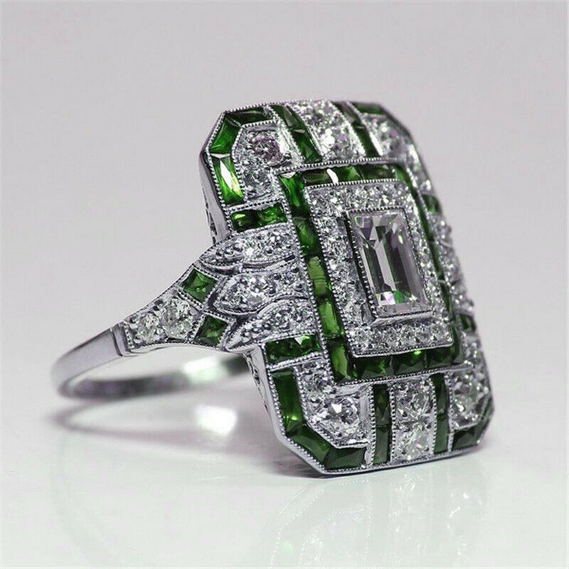 Title (ebay affiliate link): Antique Art Deco Large Jewelry Silver Green zircon Diamond Wedding Ring size 9