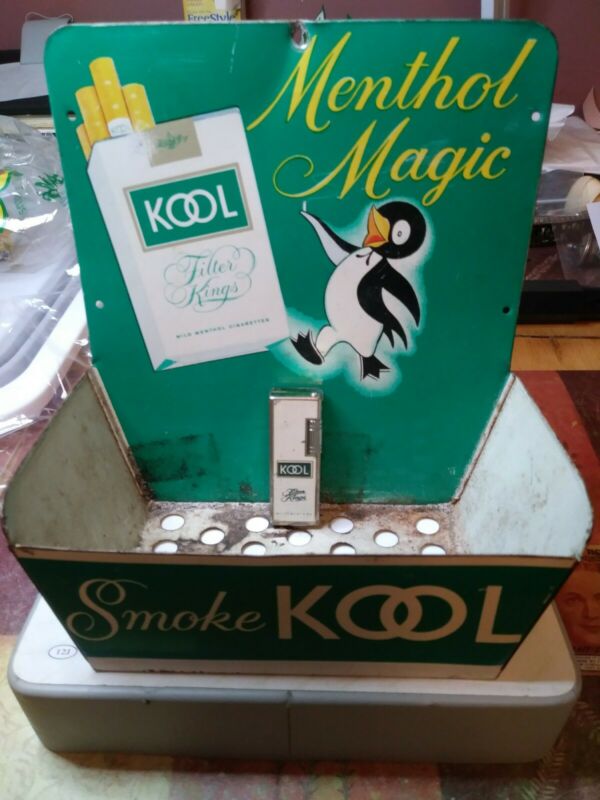 Vintage Kool Cigarette Tin Store Display + Kool Lighter