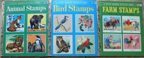 Title (ebay affiliate link): 3 Vintage Little Golden Activity Books ~ FARM STAMPS, ANIMAL STAMPS, BIRD STAMPS