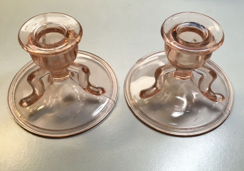 Vintage Depression Pink Glass Candle Holders (2)