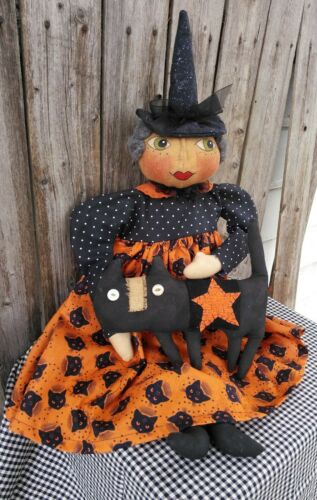 Primitive Witch/Halloween 22" w/Black Cat 8"