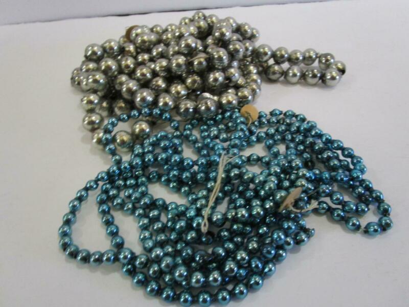 Vintage Christmas Turquoise Blue & Silver Mercury Glass Beads Tree Garland Trim