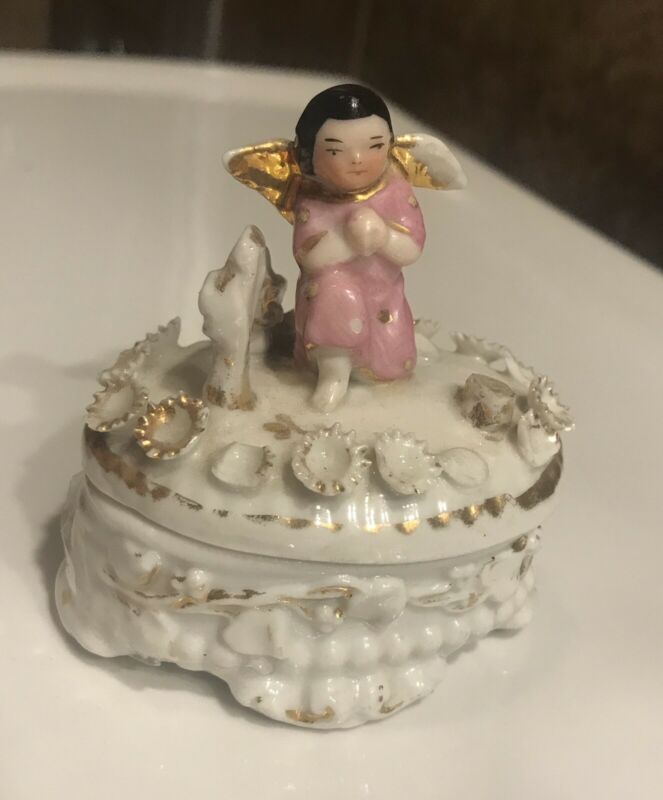 Title (ebay affiliate link): Antique German Conte Boehme Porcelain Fairing Box Angel Girl Praying