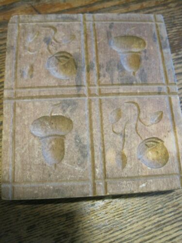 VTG WOODEN Butter Mold Stamp ACORNS/BERRIES-SQUARE SHAPE