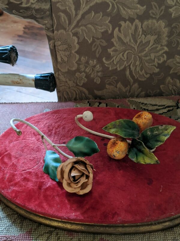 Title (ebay affiliate link): ITALIAN TOLE PINK ROSE FLOWER HOOK AND ORANGE HOOK CHIPPY OLDIE VINTAGE