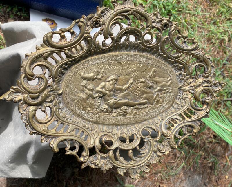 Beautiful Antique Brass Ornate Compote Cherubs King Neptune Mermaids