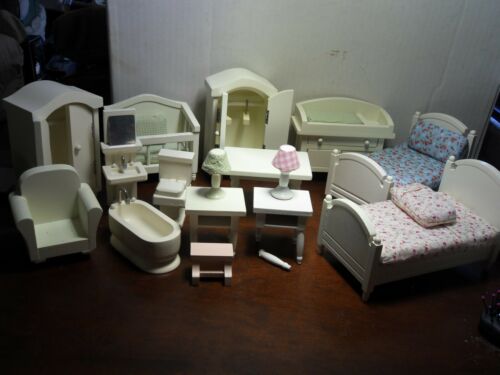 Title (ebay affiliate link): VINTAGE DOLLHOUSE FURNITURE LOT OF 13 BATHROOM, BEDROOM, LIVING ROOM