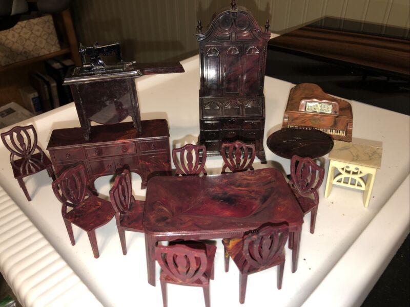 Title (ebay affiliate link): Vintage Dollhouse Miniature Lot Ideal And Other Tortoiseshell Furniture Tables +