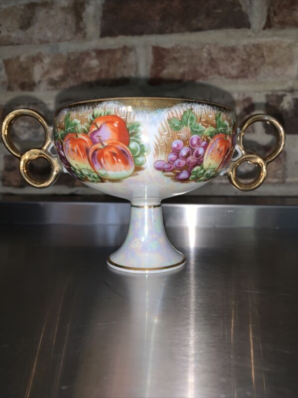 Vintage Royal Sealy China Cup Fruit Gold Trim Double Handle Lustreware
