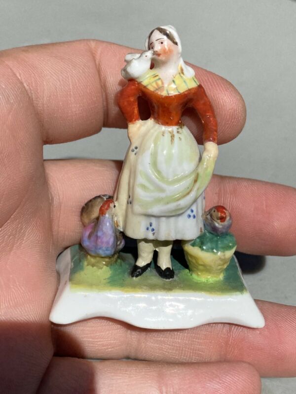Antique Porcelain Figure Of Lady With Birds And Turkey