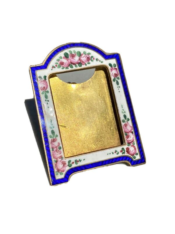 Vintage Enamel Picture Frame Miniature Made In Czechoslovakia Blue