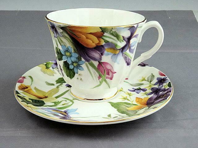 Rare Royal Patrician Fine English Bone China Cup and Saucer Spring Flowers