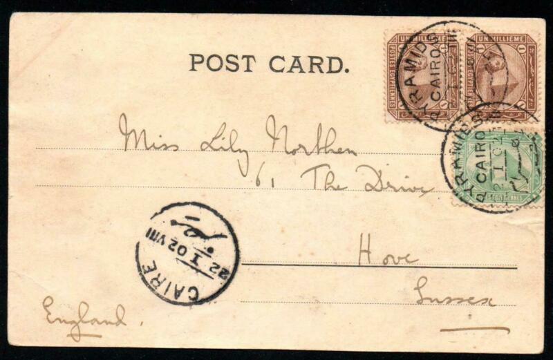 Title (ebay affiliate link): SoD Egypt fine PPC (Khalifes Tomb) posted from PYRAMIDS Cairo to HOVE 1902