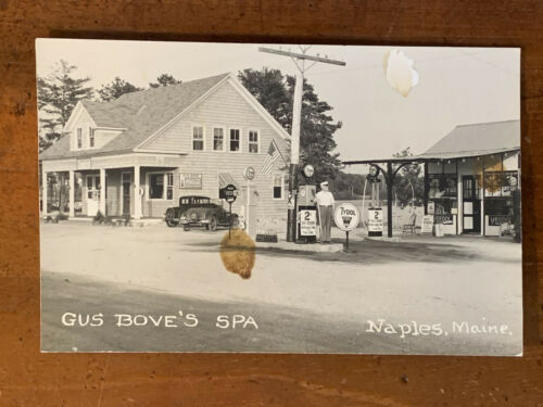 Maine ME Naples RPPC Gus Bove''s Spa, Tydol Gas Station, Coca Cola 1910 Photo PC