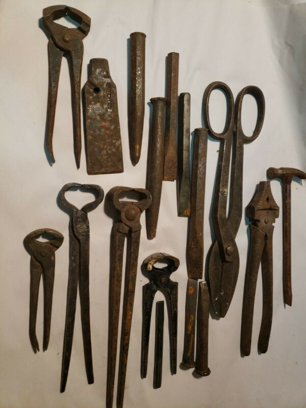Title (ebay affiliate link): Vintage Lot BLACKSMITH METAL TOOLS NIPPERS CHISELS Forge MORE METALWORKING TOOL