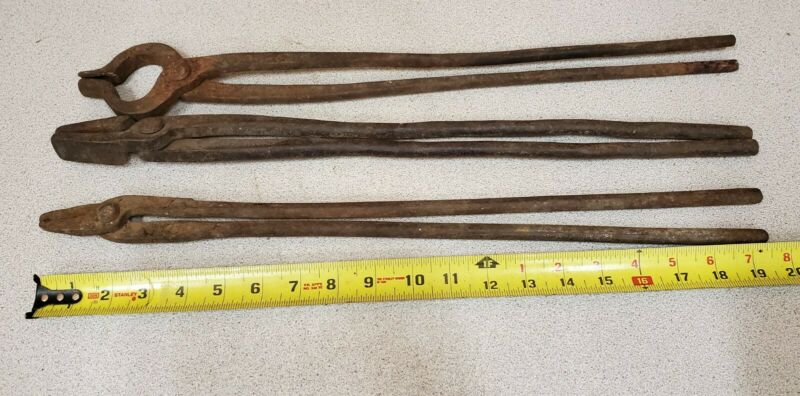 Title (ebay affiliate link): 3 Vintage Blacksmith Tongs,Round & Flat Stock,Other.Old Forging Tools