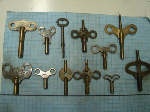 12 CLOCK KEYS - OLD - ANTIQUE - UNIQUE -