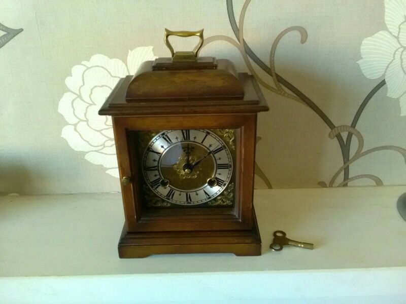 Title (ebay affiliate link): Vintage Hermle Twin Bell Fusee Key Winding Mantel Clock. Working Order.