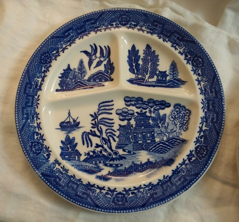 SET OF 4 Vintage MORIYAMA Divided Plate BLUE WILLOW Made in Occupied Japan
