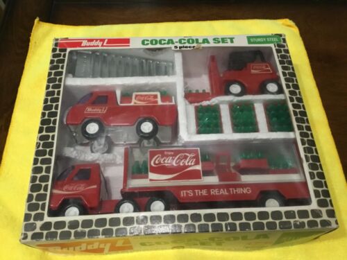Title (ebay affiliate link): Buddy L Coke Coca Cola 5 Piece Vehicle Set 4973 Delivery Truck Forklift Vintage
