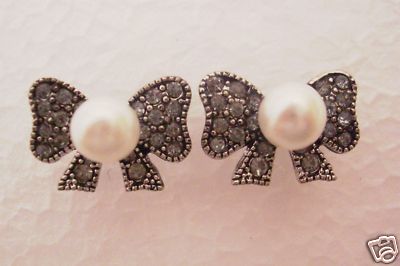Title (ebay affiliate link): ANTIQUE CLEAR CRYSTAL FAUX PEARL BOW STUD PAIR EARRINGS