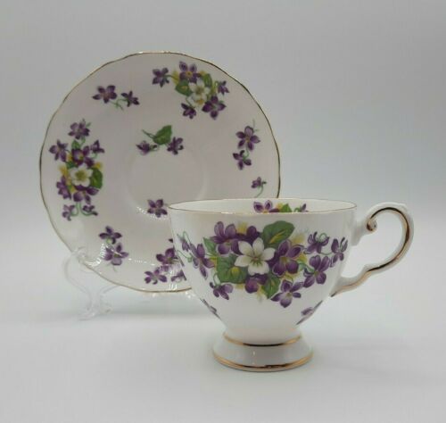 Vintage Royal Tuscan Fine Bone China England Teacup Saucer Woodland Violet