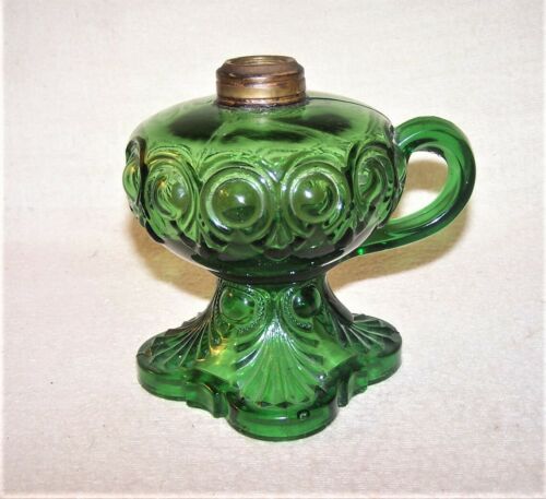 Fine Antique Finger Oil Lamp - Bullseye - Green Glass - Estate