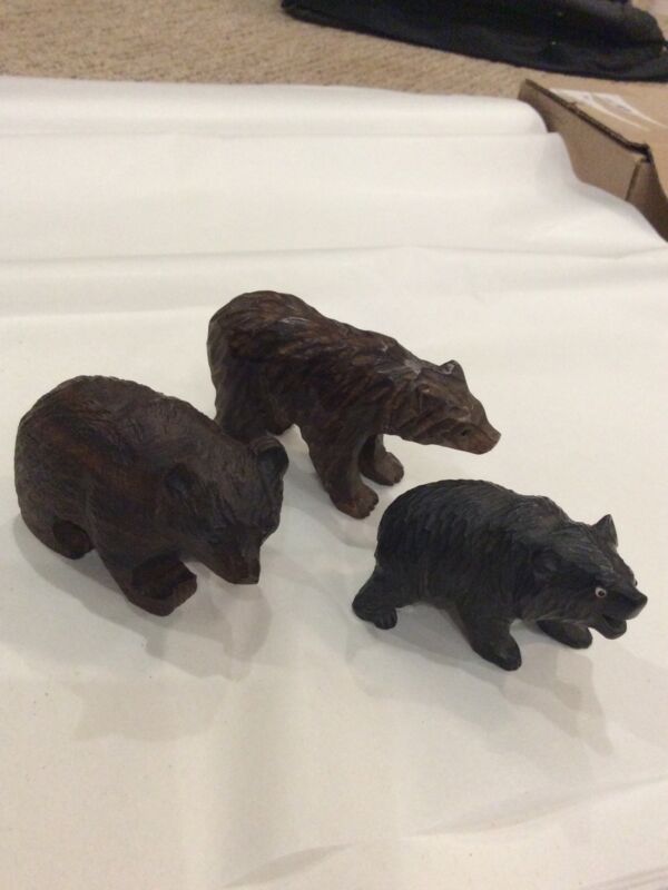 Set Of 3 Carved Wood Bears - One Blackforest- Vintage